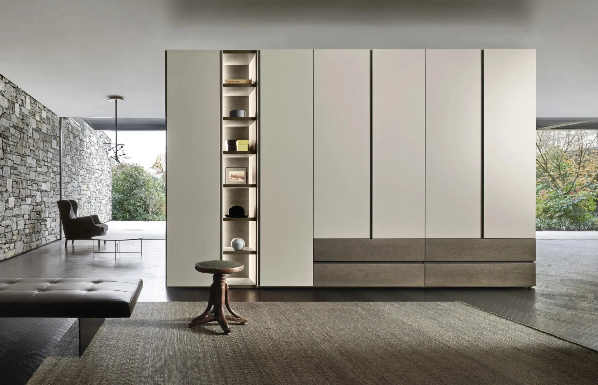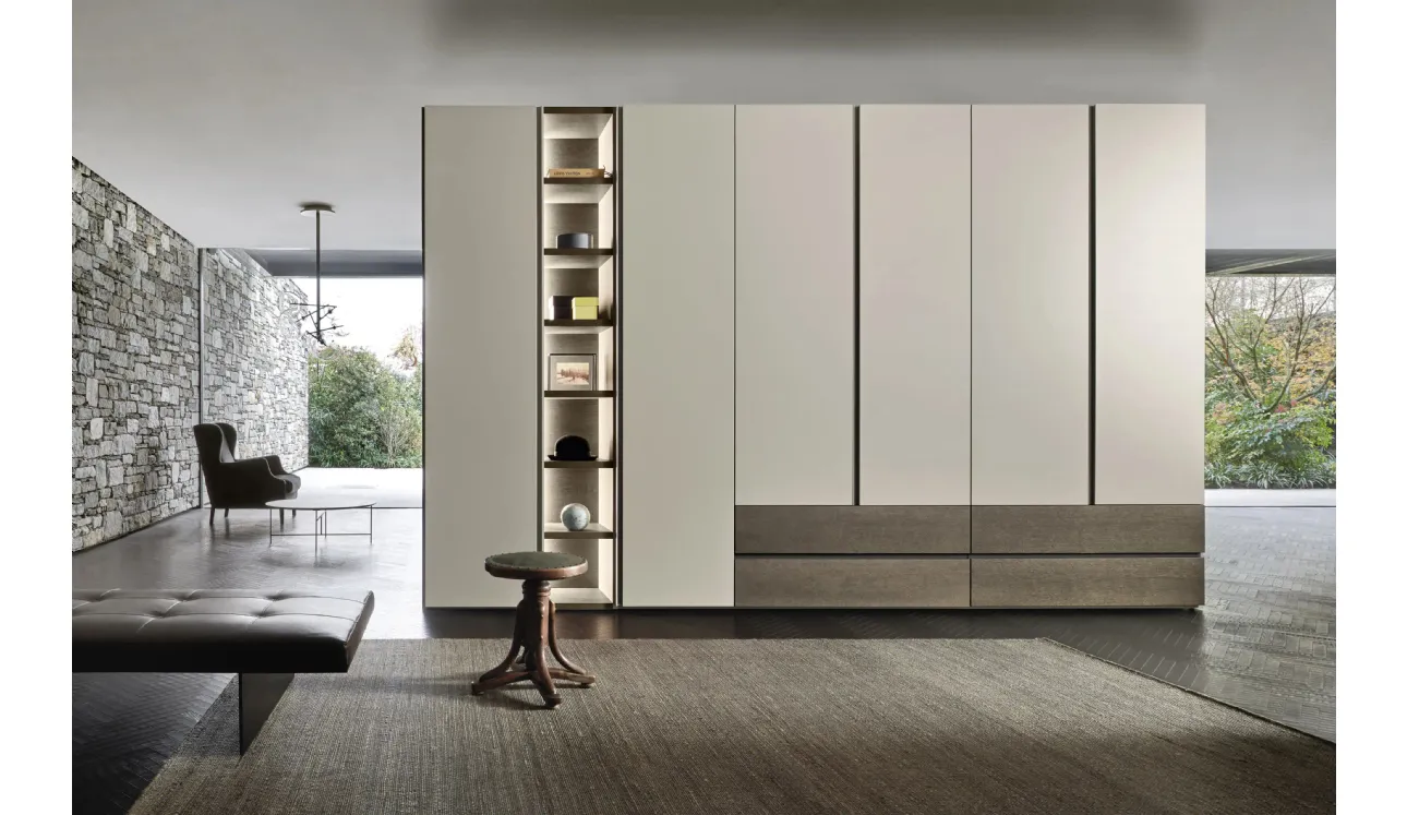 Voici l'armoire Collage en laque mate de Sangiacomo ! Un riche catalogue d'armoires encastrées avec portes battantes.