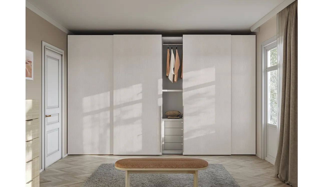 Les placards mur avec portes coulissantes sont des éléments indispensables dans une chambre à coucher, pour la rendre bien meublée, pratique et complète. Contactez-nous et découvrez notre gamme de mobilier pour la maison : vous pourrez finaliser la zone nuit en profitant d'une large variété de meubles de rangement modernes, comme l'armoire en mélaminé sur la photo. Armoire Concreta W17 Coulissante de Colombini Casa : remplissez le formulaire pour recevoir des informations de toutes sortes et des conseils pour aménager la chambre dont vous avez toujours rêvé.