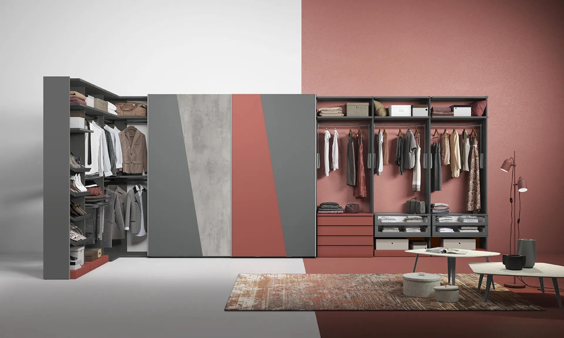 Vous cherchez une armoire en mélaminé? Cliquez et découvrez les armoires dressing avec portes coulissantes de Colombini Casa.