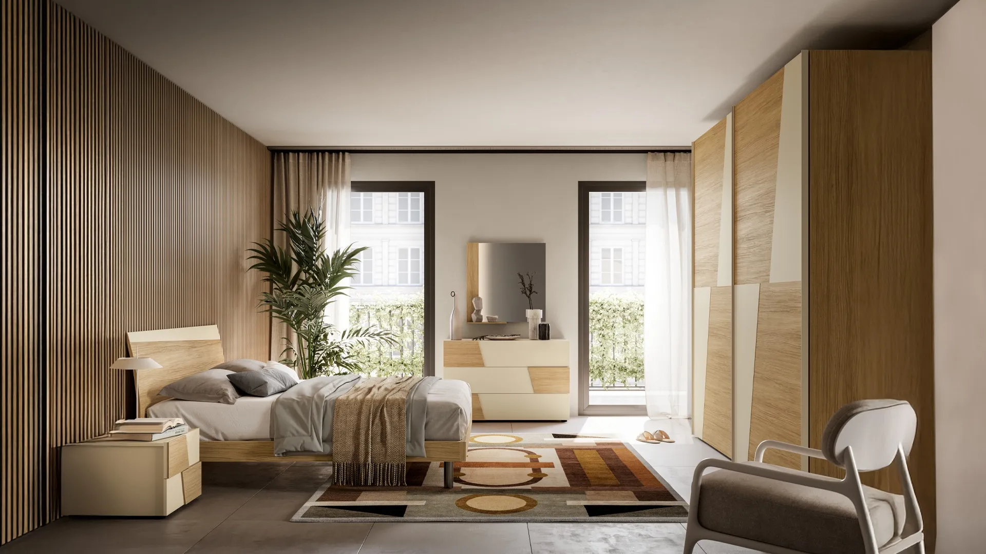 Contactez-nous et découvrez notre gamme de mobilier Maison : vous pourrez compléter la chambre en utilisant une large offre de contenants design, comme l'armoire en mélaminé dans l'image. Armoire coulissante Mosa de SantaLucia : remplissez le formulaire pour recevoir des informations de tout type et des conseils pour meubler la chambre dont vous avez toujours rêvé. Les armoires murales avec portes coulissantes sont des éléments essentiels dans une chambre, pour la meubler au mieux, de manière pratique et complète.