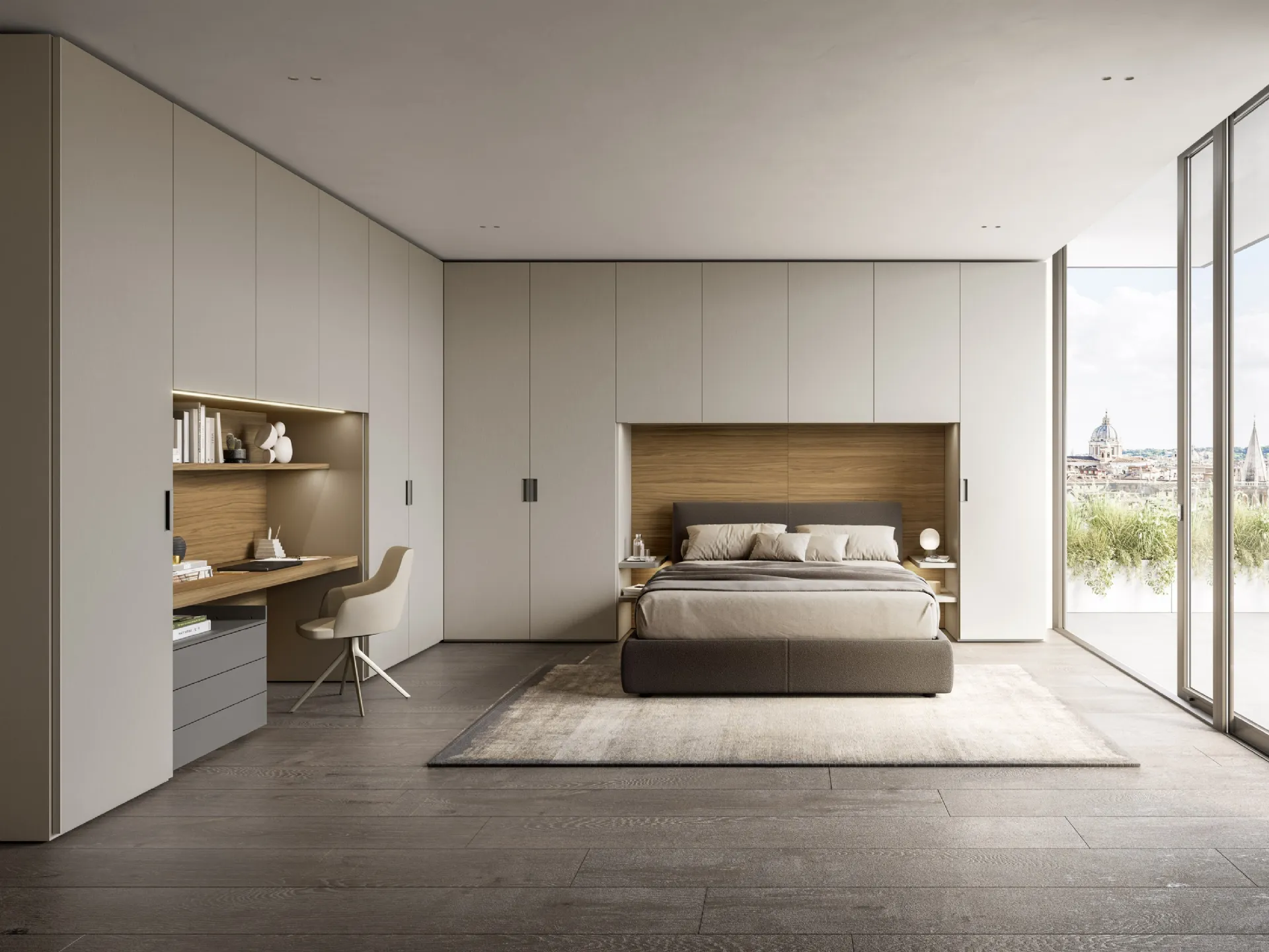 Contactez-nous et découvrez-en davantage sur notre collection de mobilier de maison : vous aurez la possibilité de compléter votre chambre en profitant d'une offre variée de meubles de rangement modernes, comme l'armoire en mélaminée sur la photo. Armoire Pont de Sangiacomo : remplissez le formulaire pour recevoir des informations de toutes sortes et des conseils pour concevoir la chambre de vos rêves. Les armoires pont avec portes battantes sont des éléments essentiels en chambre, pour la rendre meublée au mieux, pratique et complète.