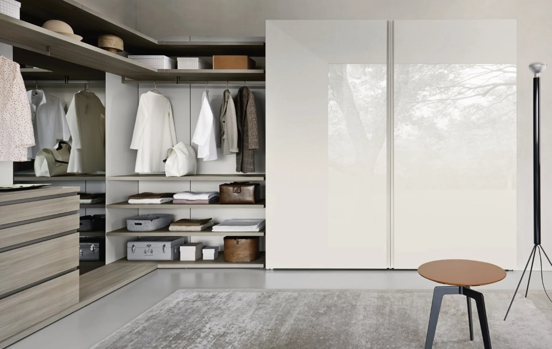 Les armoires murales à portes coulissantes sont des éléments indispensables dans la chambre à coucher, pour la rendre décorée avec goût, pratique et complète. Armoire encastrée Sinua de Sangiacomo : remplissez le formulaire pour recevoir des informations de tous types et des conseils pour aménager la chambre dont vous avez toujours rêvé. Contactez-nous et obtenez des informations sur notre ligne de Mobilier Maison : vous pourrez compléter votre chambre à coucher en ayant à disposition une large offre de meubles de rangement modernes, comme l'armoire laquée brillante dans l'image.
