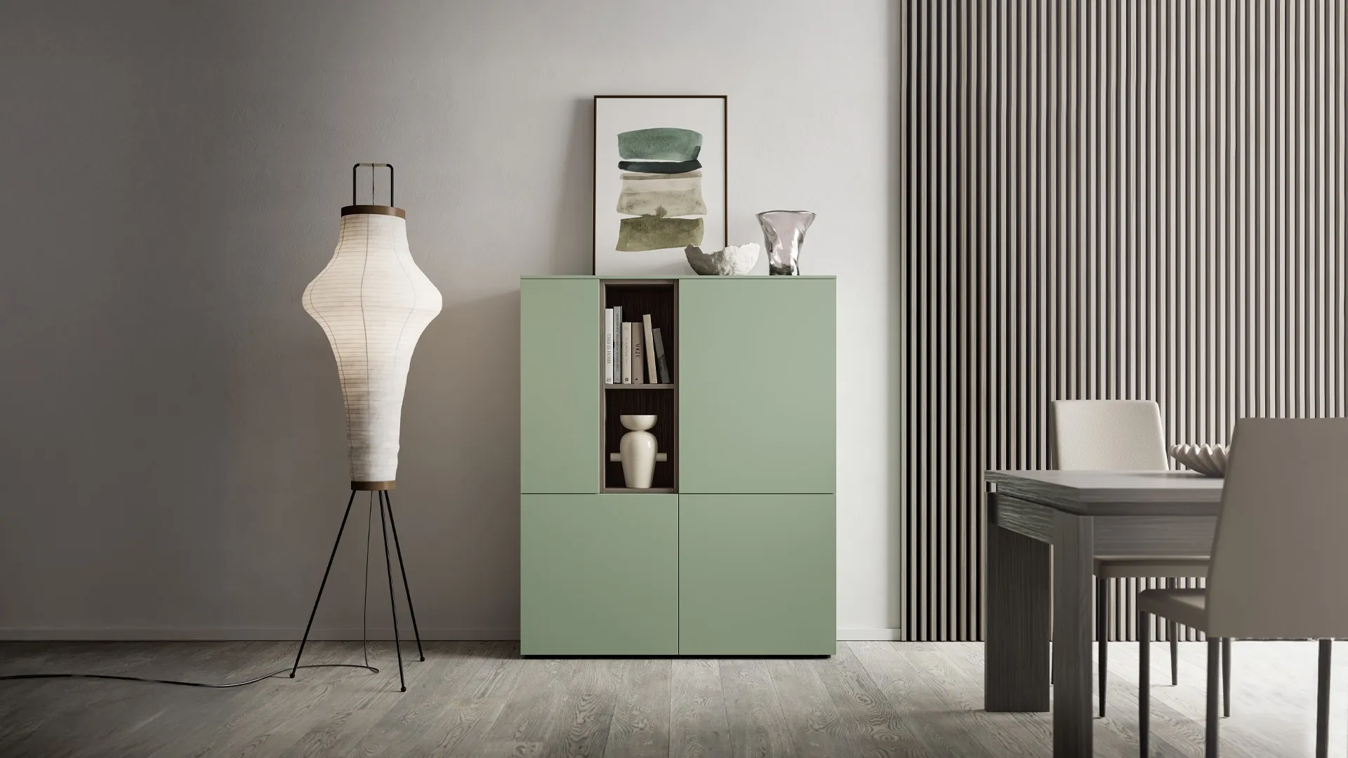 Vous cherchez un nouveau buffet pratique et sophistiqué aux lignes modernes ? Nous vous proposons le modèle Pratico L1224 H1491 de SantaLucia, fabriqué en mélaminé.