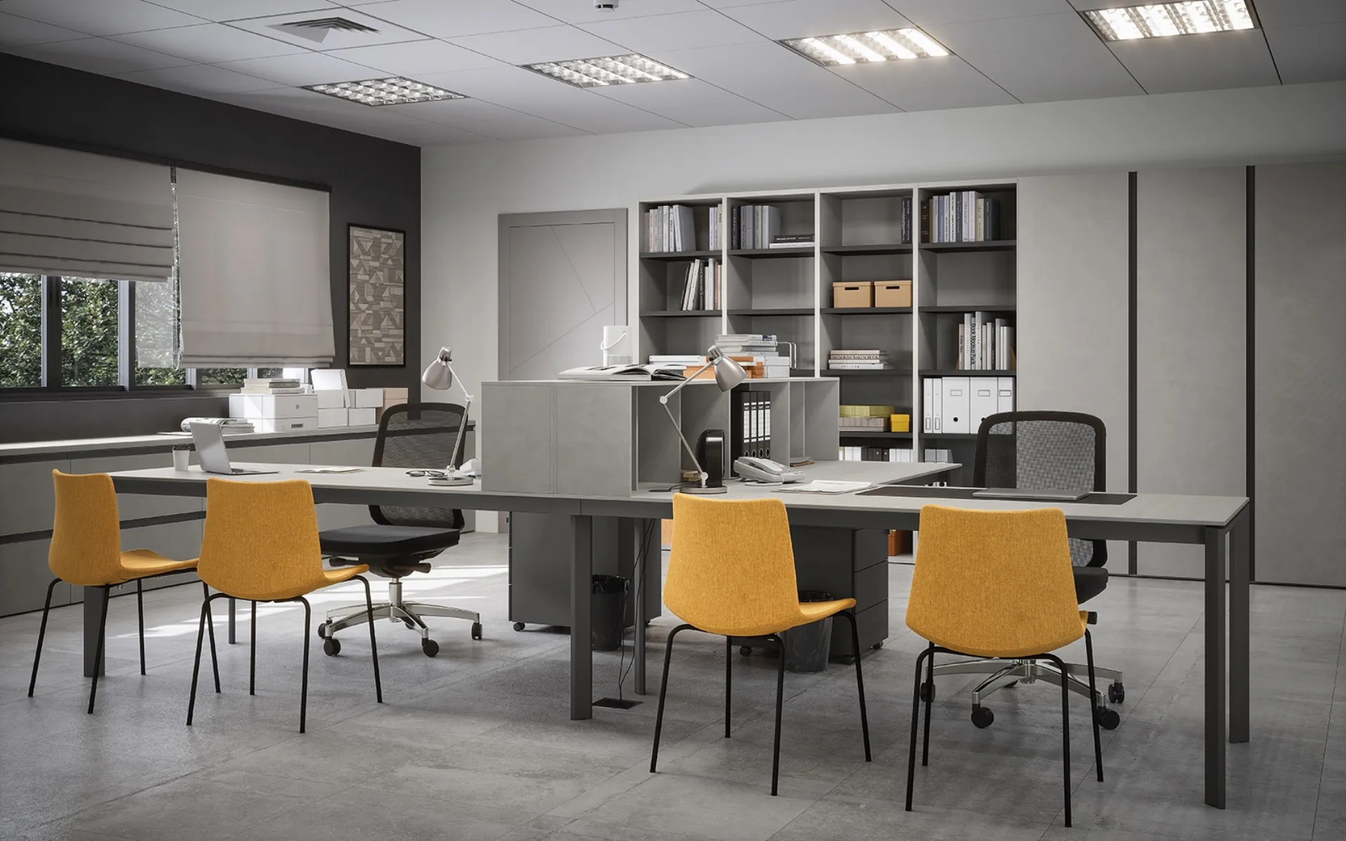 Cinquanta3 présente des meubles de grande qualité, toujours capables de répondre à différentes demandes en termes de valeur esthétique et de fonctionnalité. Mobile Ufficio Libreria 04A de Cinquanta3 : il fait partie de la gamme pratiquement infinie de meubles pour espaces de travail de la marque, leader dans le secteur de l'aménagement de bureaux. Donnez forme à votre espace de travail avec des solutions de bibliothèques de bureau en mélaminé de la marque : la vaste gamme de mobilier pour votre bureau vous attend en magasin. Chez nous, vous pourrez voir de vos propres yeux toutes les compositions exclusives d'aménagement de bureau en mélaminé disponibles sur le marché, toujours de grande qualité. La proposition en photo, parmi les nombreux modèles de bibliothèques de bureau signés Cinquanta3, conférera personnalité et élégance aux espaces, en les équipant de manière rationnelle et logique.