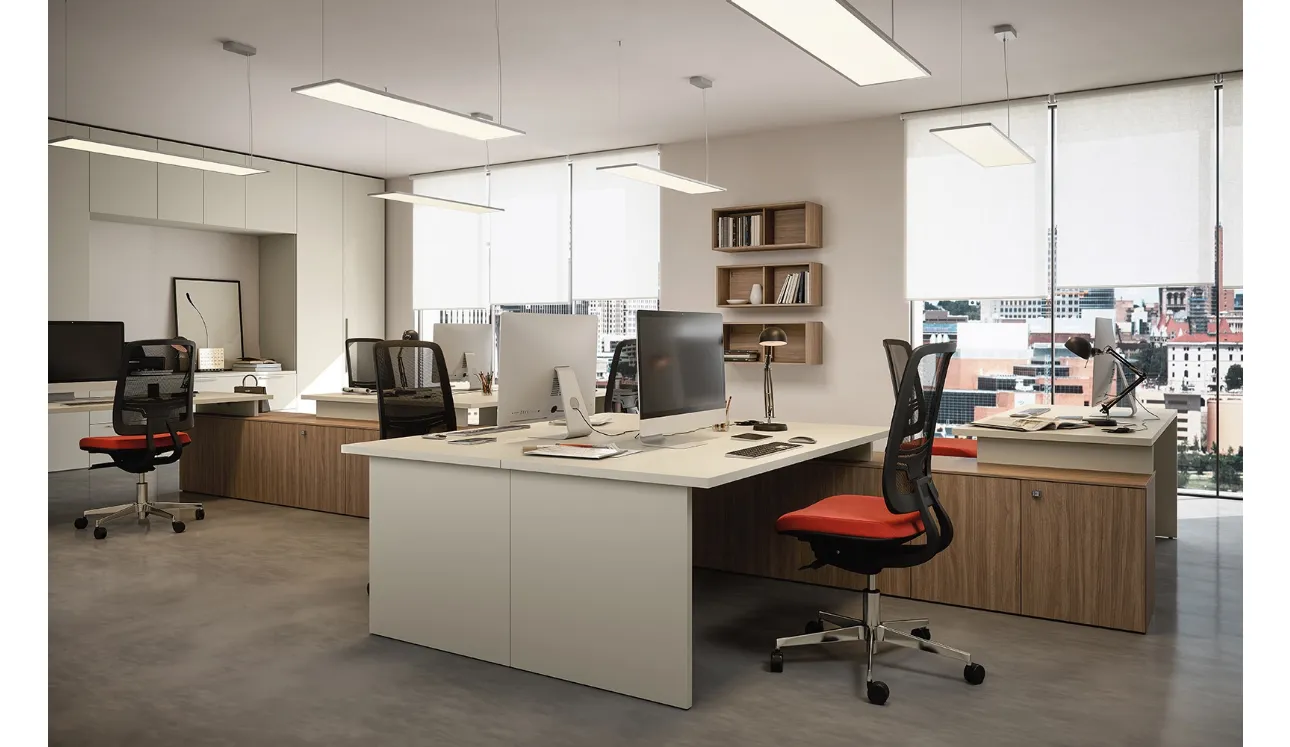 Cinquanta3 propose des meubles de qualité excellente, toujours capables de répondre à différentes demandes en ce qui concerne à la fois la valeur esthétique et la fonctionnalité. Le bureau opérationnel 05A de Cinquanta3 appartient au choix presque infini de meubles pour les bureaux de la marque, leader dans le monde du mobilier de bureau. Construisez votre espace de travail avec des solutions de bureaux opérationnels en mélaminé de la marque : la riche série de mobilier pour votre bureau vous attend en magasin. Chez nous, vous pourrez toucher de vos propres mains toutes les plus belles compositions de mobilier de bureau en mélaminé disponibles sur le marché, toujours de qualité excellente. Le modèle en photo, parmi les différents modèles de bureaux opérationnels signés Cinquanta3, donnera de la personnalité et de l'élégance aux espaces, les équipant en mélangeant logique et rationalité.