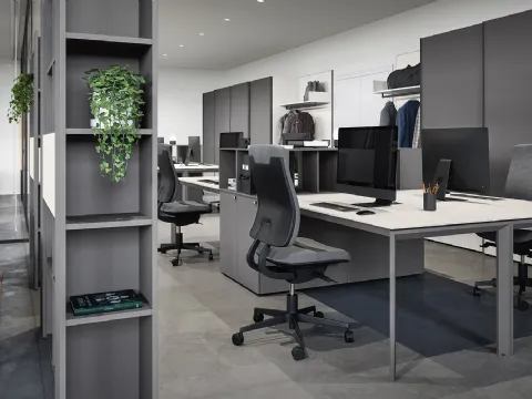 Vous souhaitez aménager votre bureau ? Voici différentes propositions de bibliothèques de bureau en mélamine, comme le modèle Libreria 07A d'Insieme3.