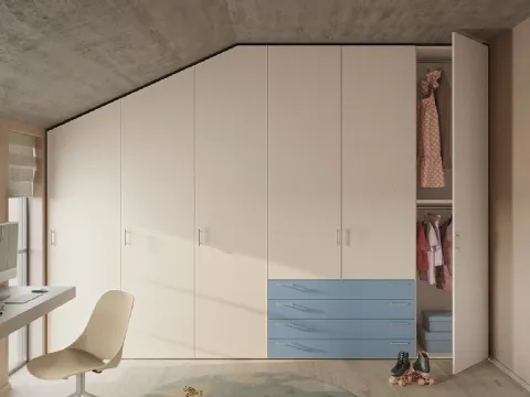 Avec cette chambre Kids space 09 Nidi, parmi les solutions avec lits superposés, vous pourrez concevoir des chambres modernes pour les enfants.