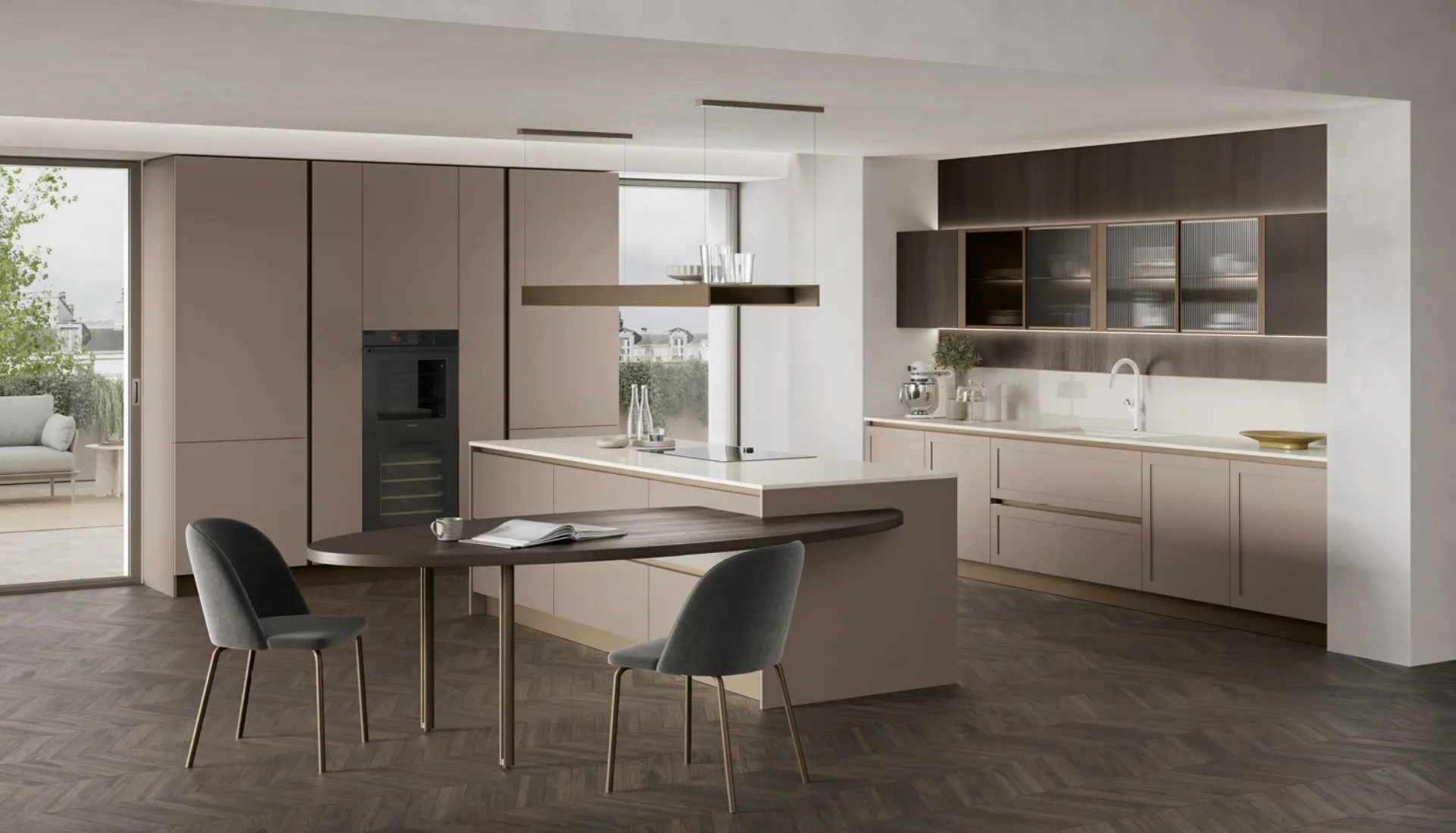 Cuisines modernes avec îlot : cliquez et découvrez une large gamme de solutions de la marque Stosa, y compris le modèle Infinity Modern 02.