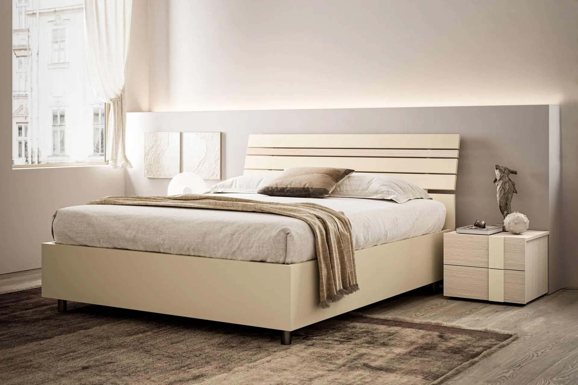 Veux-tu renouveler la chambre à coucher ? Voici le lit en mélaminé Baya par SantaLucia pour des espaces modern
