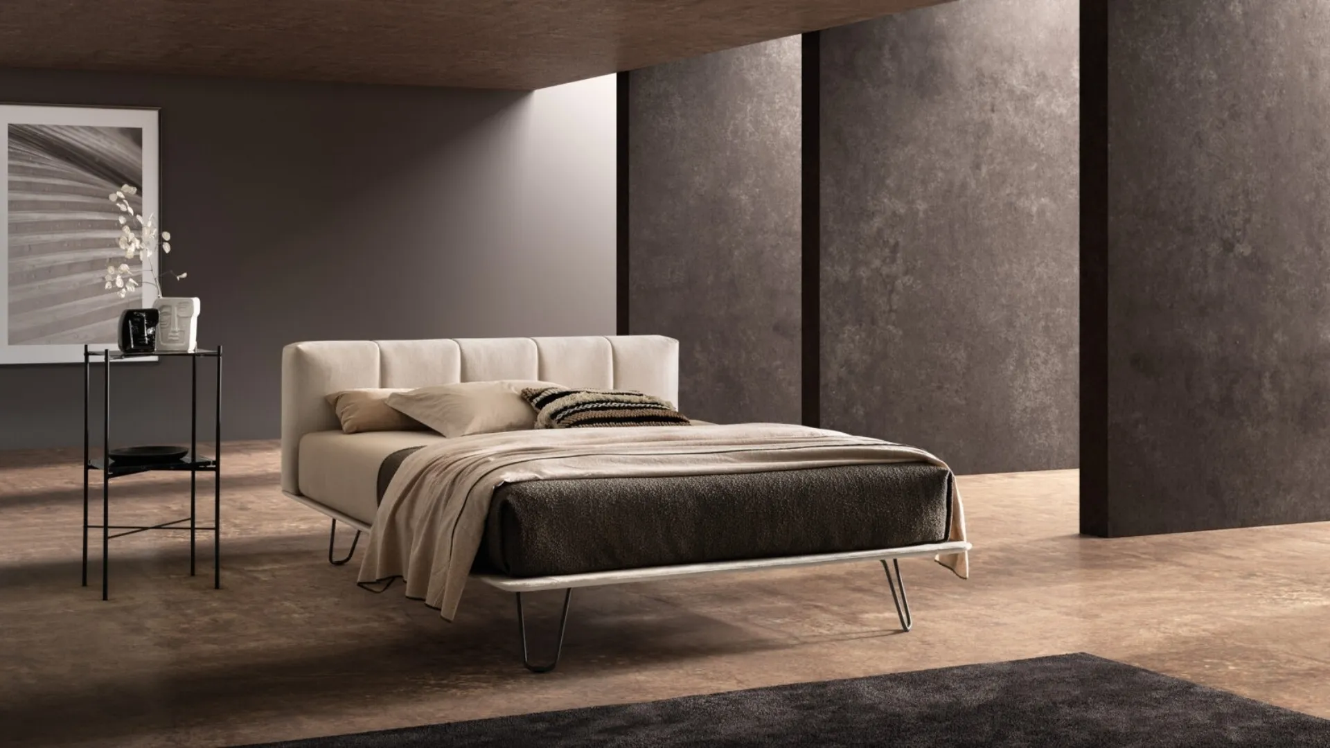 Pour compléter parfaitement l'aménagement de votre chambre à coucher, il est primordial d'évaluer les agencements du lit avec les armoires et les tables de chevet, les accessoires et tout le reste : si vous recherchez un mobilier design, le modèle en photo est fait pour vous. Il s'agit d'un produit de grande classe, qui encapsule toute la qualité garantie par l'expérience pluriannuelle de la marque dans le domaine. Le Lit avec tête de lit Crook de Bside est l'un des produits les plus exclusifs de la marque, synonyme de durabilité dans le temps, de qualité des finitions et d'un design unique. Contactez-nous et obtenez des informations sur notre ligne de Lits doubles rembourrés : valorisez votre chambre avec nos solutions.