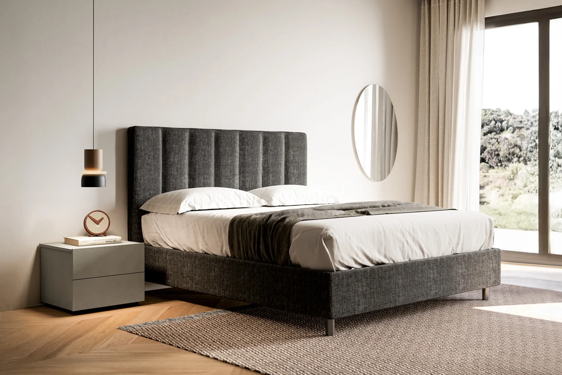 Le lit Kali en tissu, parmi les modèles de lits matrimoniaux rembourrés modernes de SantaLucia, est idéal pour vous assurer le meilleur repos.