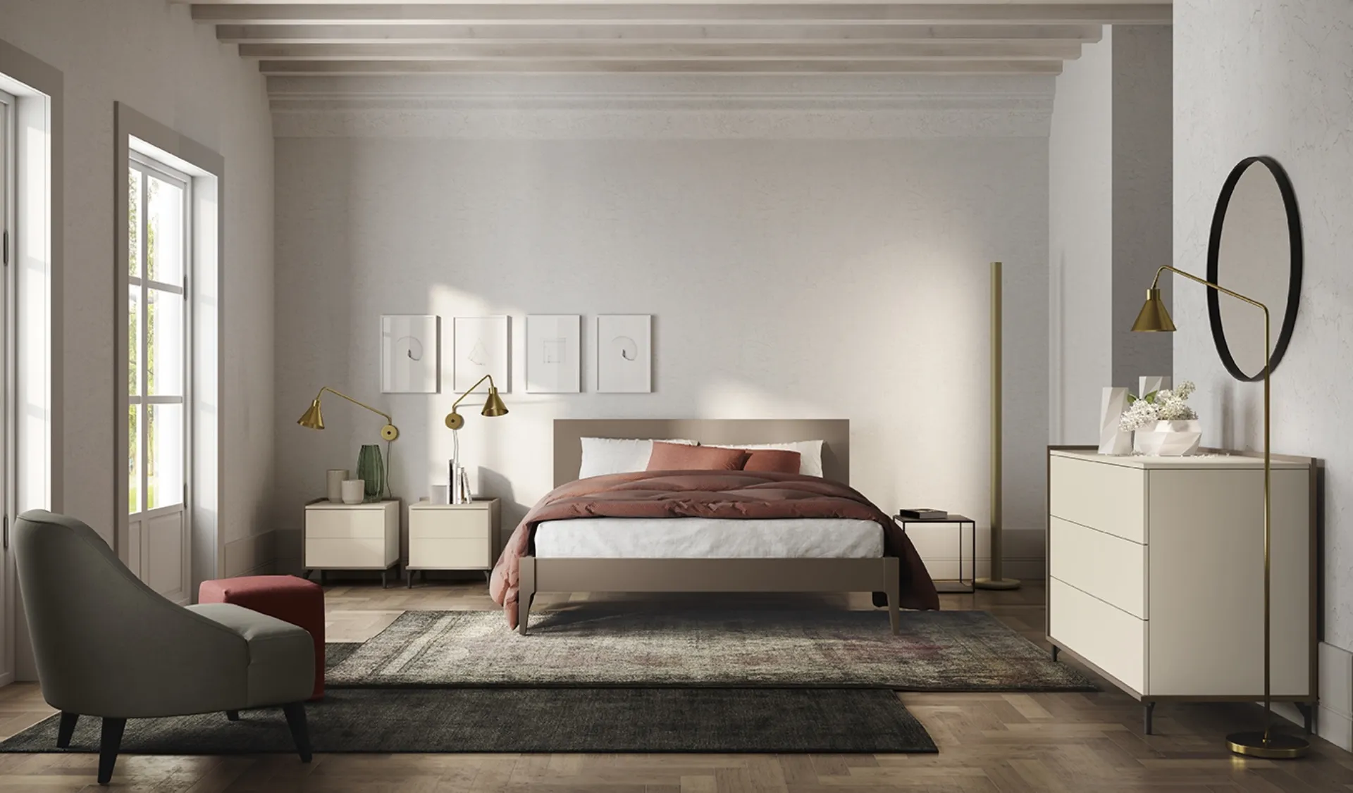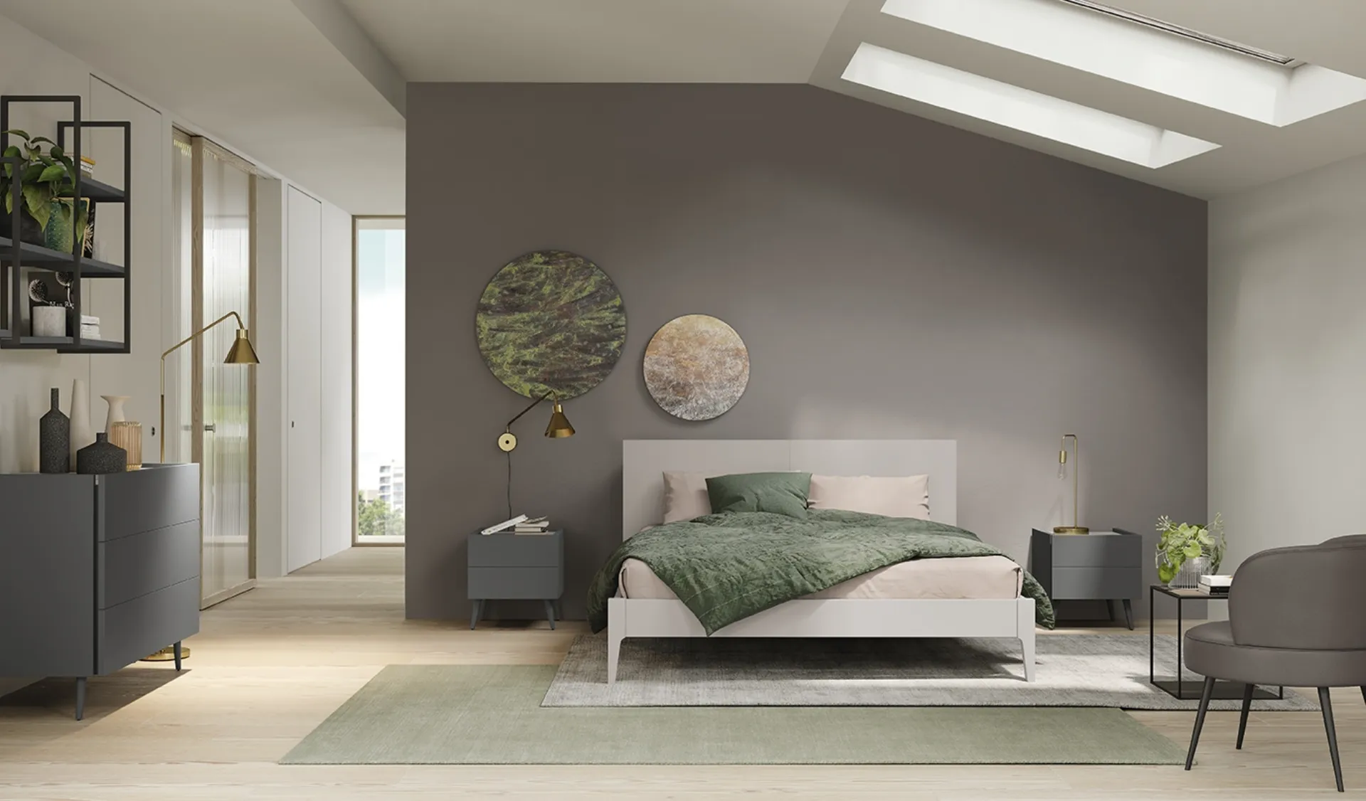 Veux-tu concevoir la chambre à coucher? Voici le lit en mélaminé Mushy de Colombini Casa pour des espaces modernes.