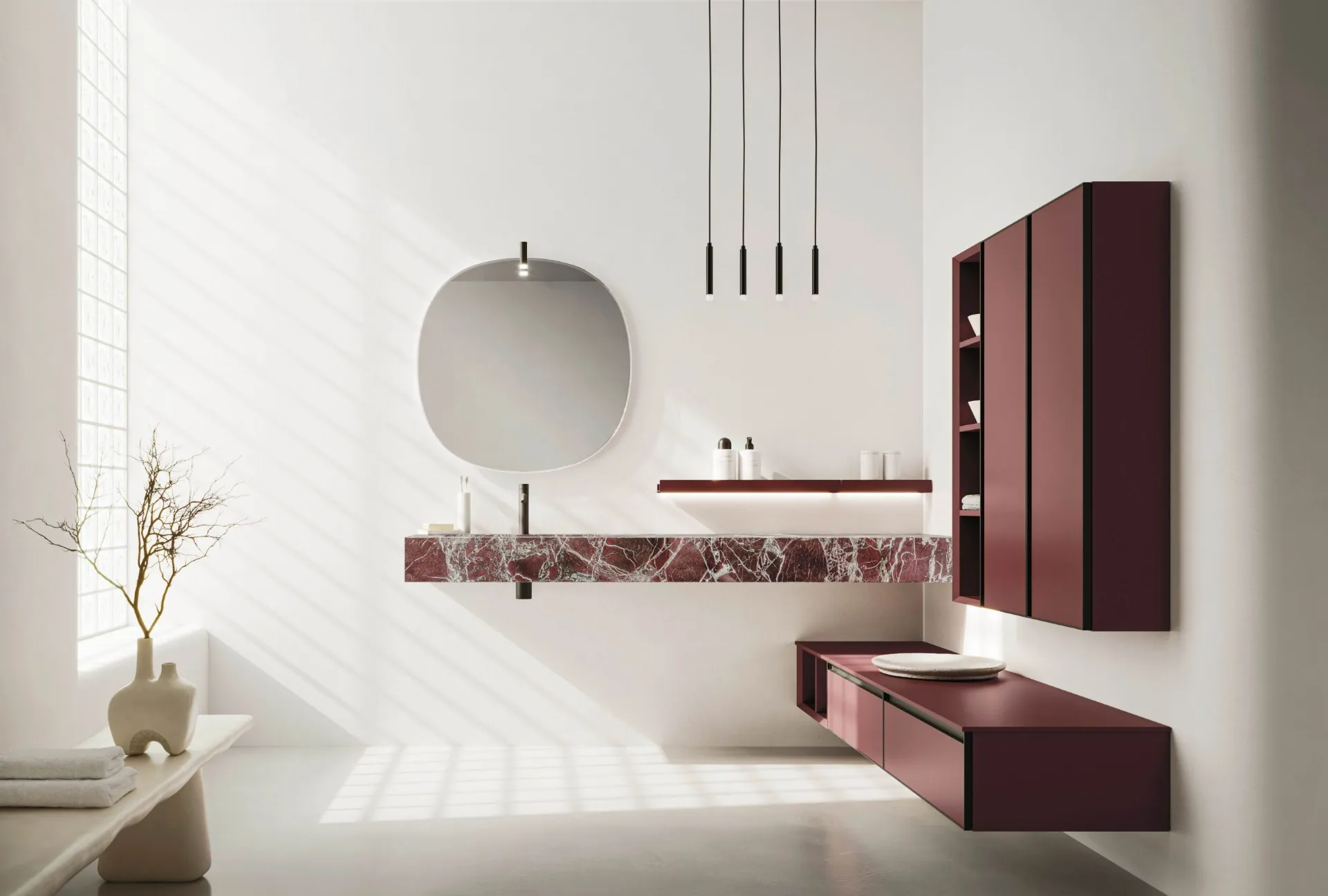 Meubles de salle de bain suspendus laqués mat de la marque Arbi : cliquez et découvrez le mobilier de salle de bain design Absolute 46 pour la salle de bien-être.