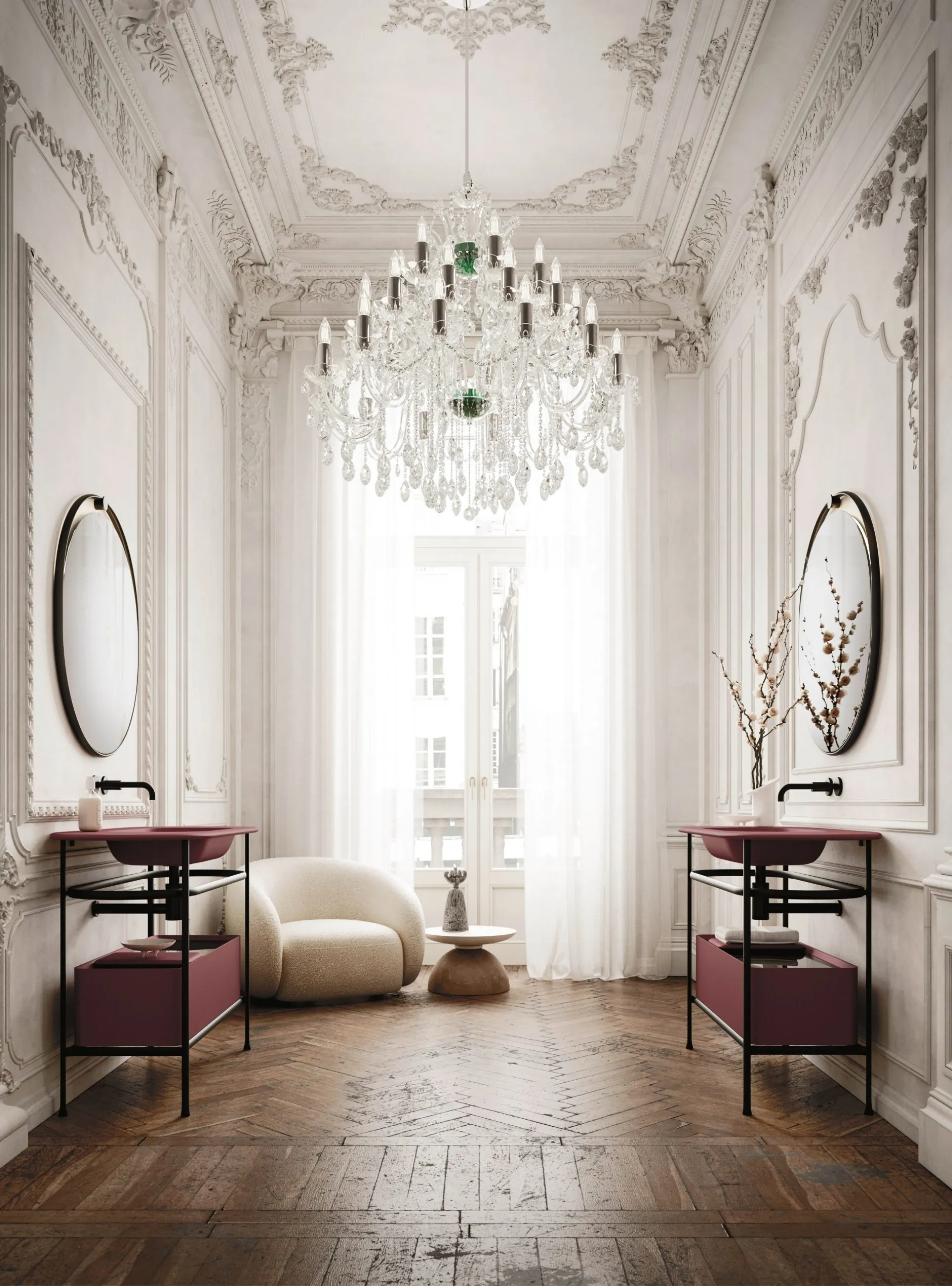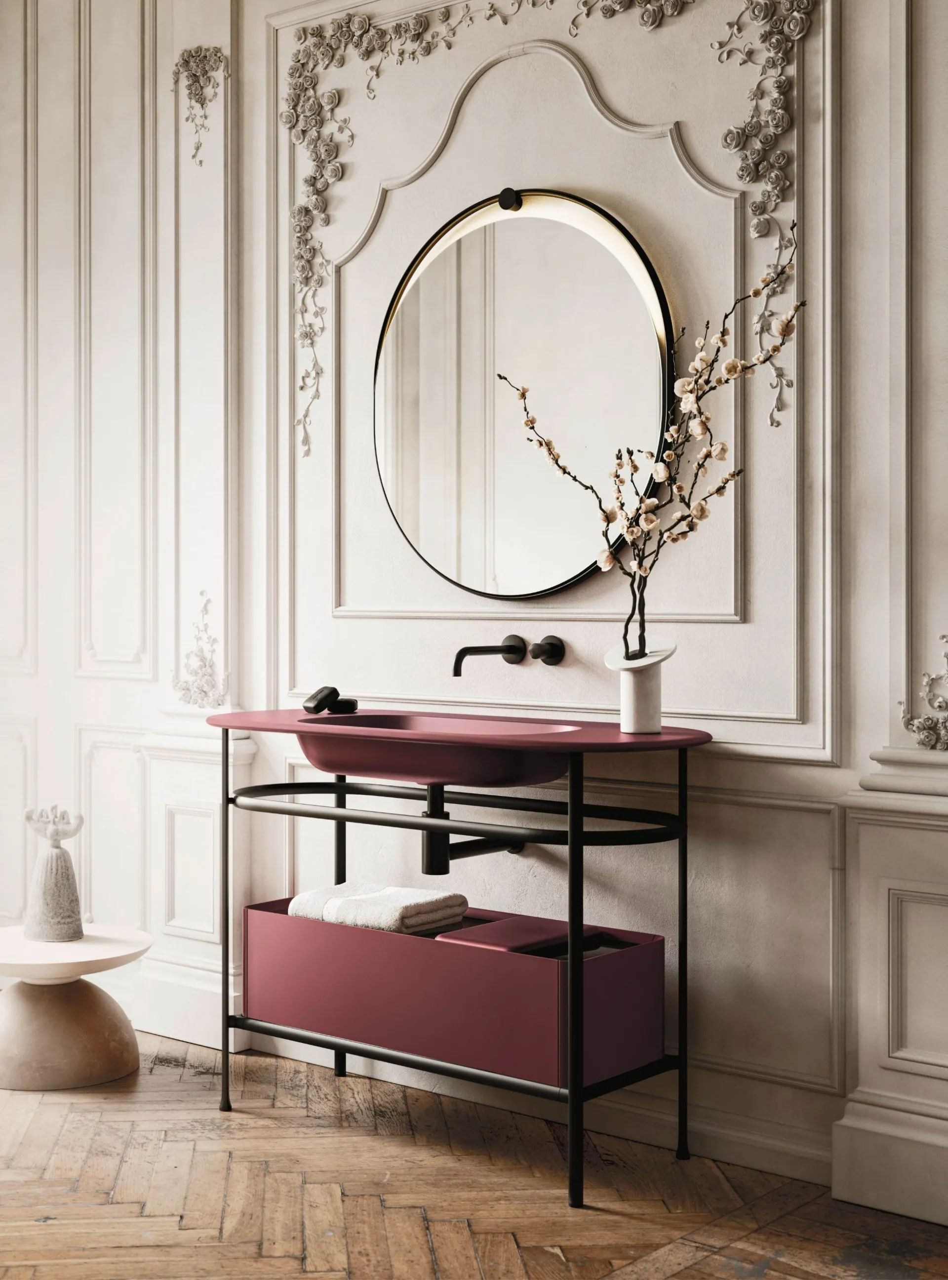Obtenez des informations sur le mobilier de salle de bain design : des meubles de salle de bain suspendus laqués mats tels que le modèle Almond 02 d'Arbi
