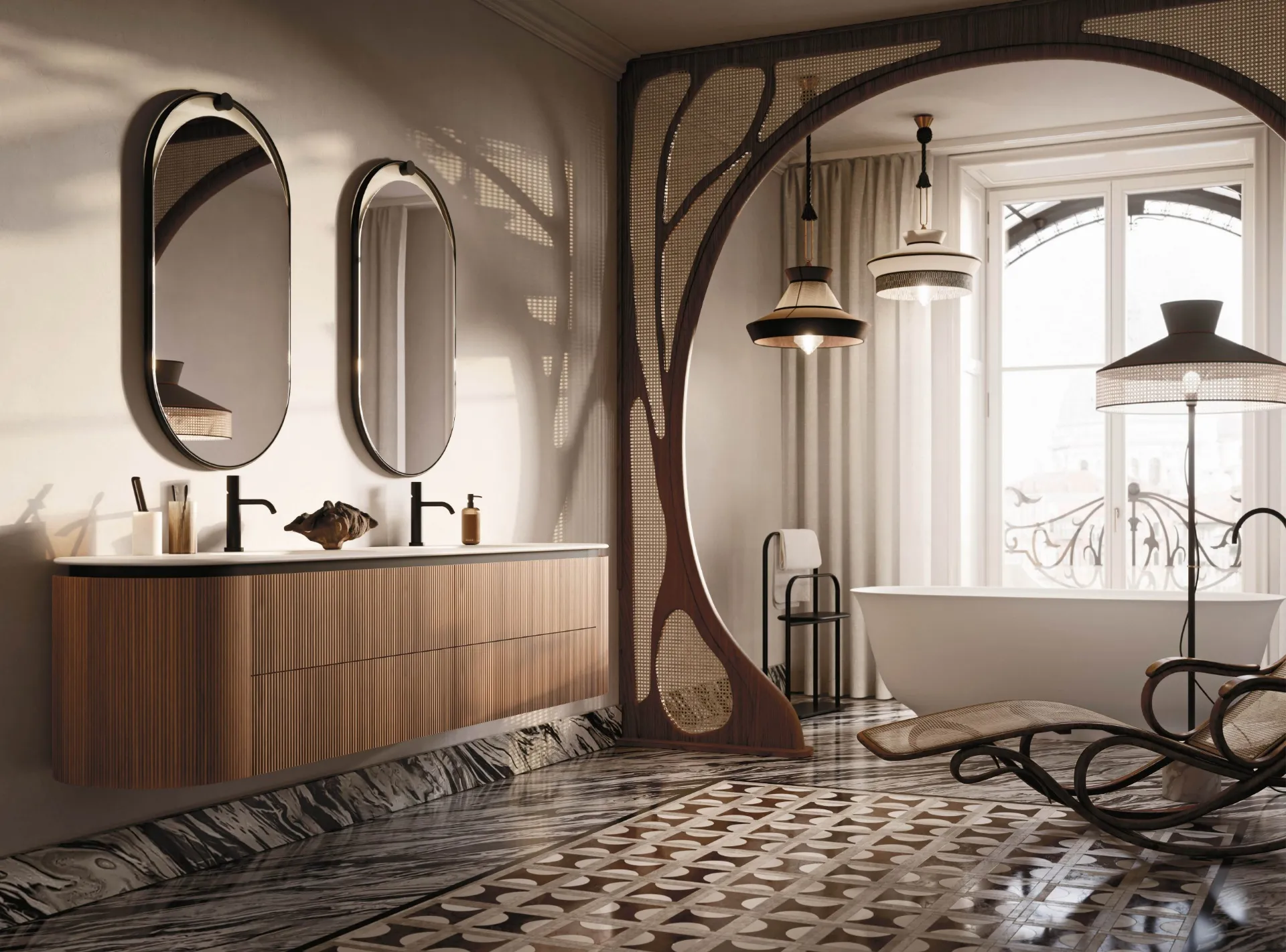 Découvrez-en plus sur le design de salle de bain : des meubles de salle de bains suspendus en bois comme le modèle Almond 07 d'Arbi