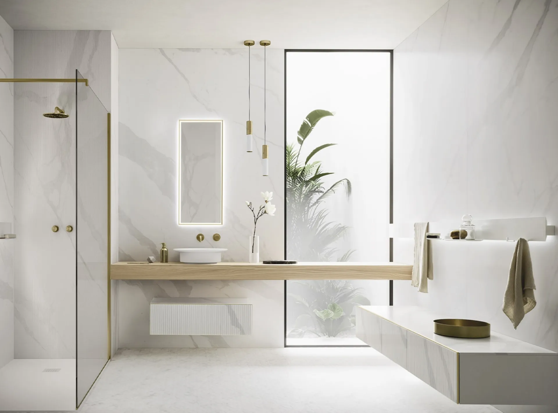 Meuble de salle de bain suspendu en résine minérale de la marque Arbi : cliquez et découvrez le meuble de salle de bain design Luxor 06 pour la salle de bien-être.