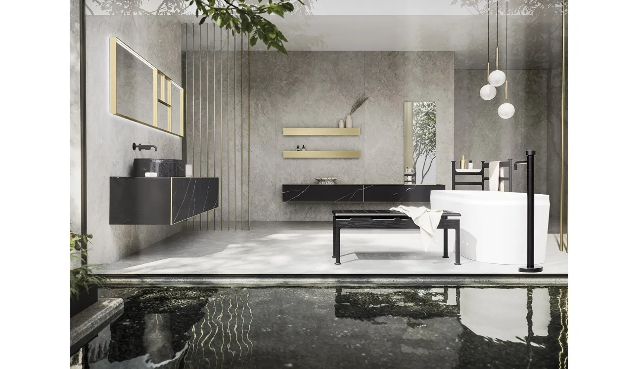 Arreda la stanza del benessere design alla perfezione con Luxor 04, mobili bagno sospesi e complementi in resina minerale di Arbi.