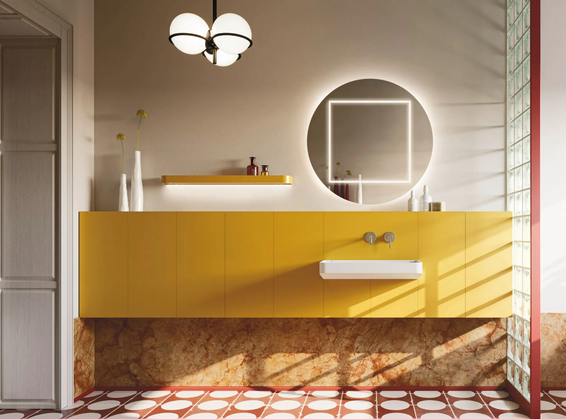 Meuble suspendu pour salle de bains Over 01 d'Arbi : cliquez et obtenez des informations sur les meubles de salle de bains suspendus en laqué mat et les accessoires de la marque