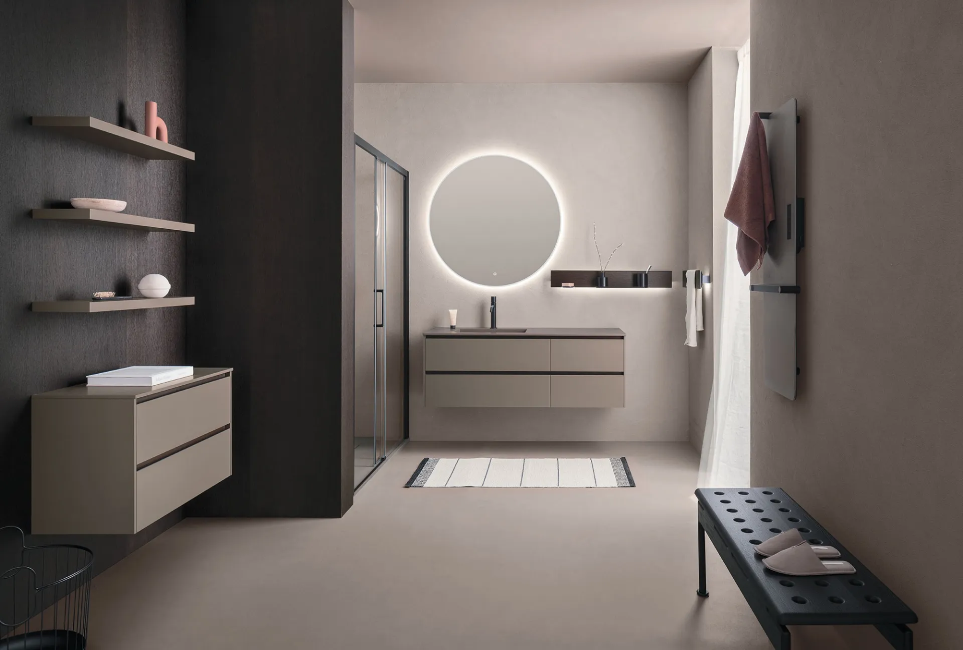 Meubles de salle de bain suspendus Sky Gola 03 d'Arbi : découvrez le mobilier de salle de bains en laqué mat moderne et