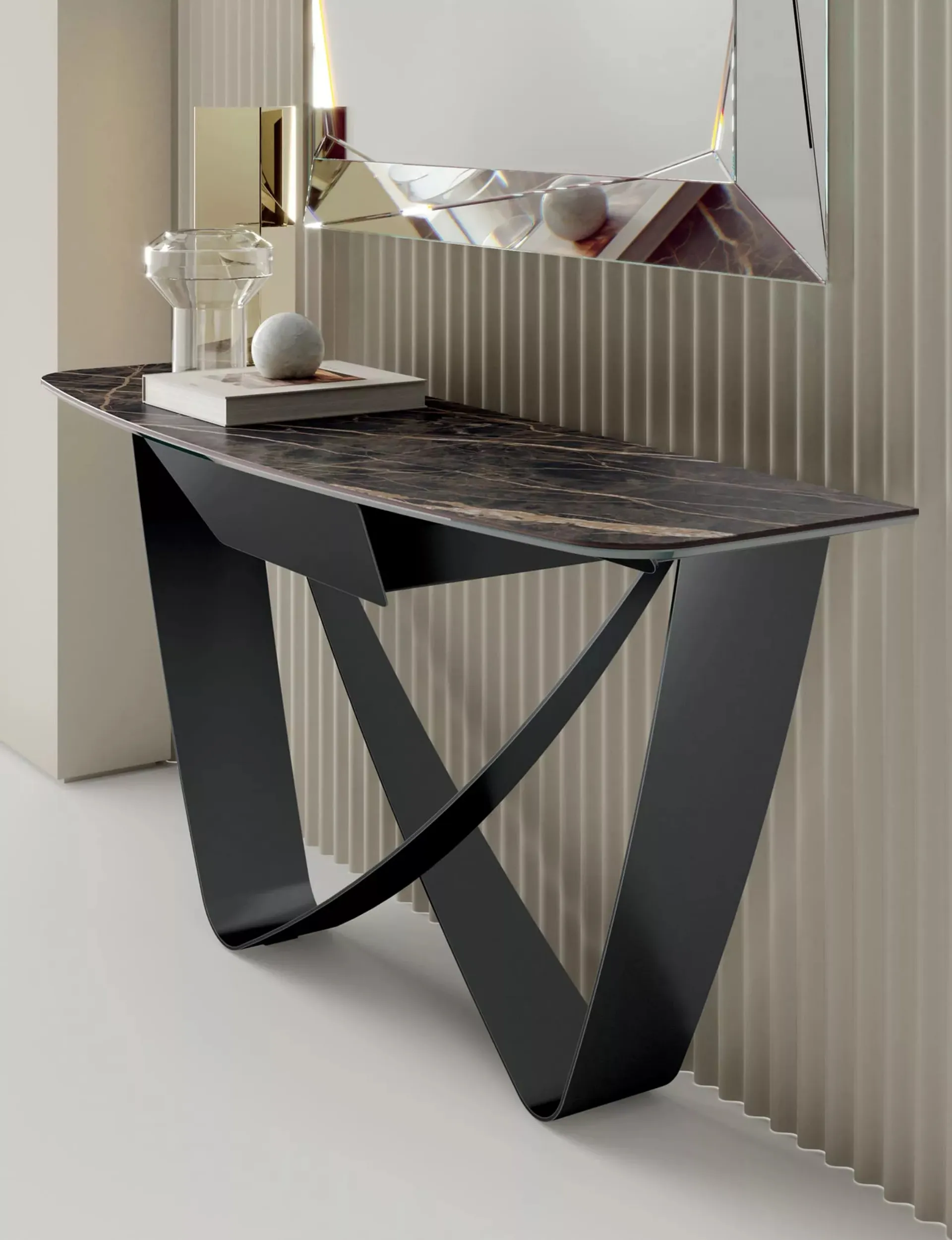 Meubles d'entrée design? Entrez et découvrez plus sur le modèle Bach Consolle SuperMarmo en grès de la marque Bontempi pour les entrées design.