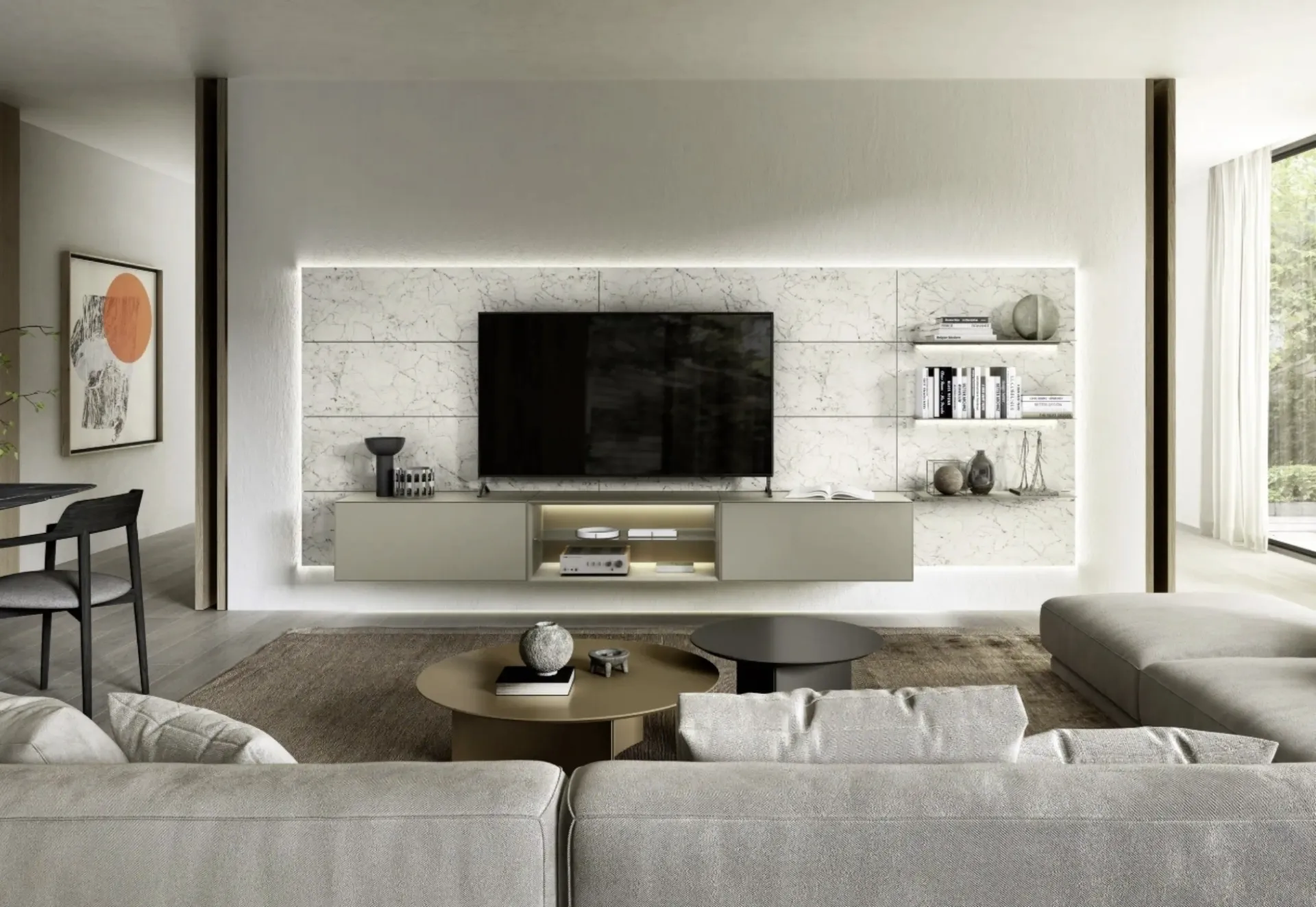 Cliquez et obtenez des informations sur le système mural Domino Boiserie 05 de la marque Sangiacomo : c'est la solution aux lignes modernes parfaites pour vous.