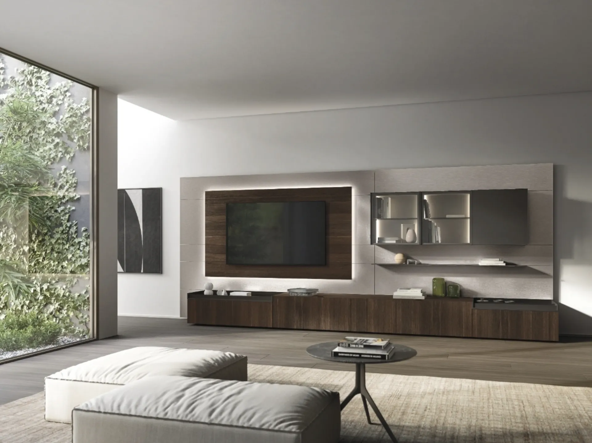 Un mélange de bibliothèques, de contenants et d'exposants : les murs équipés sont idéaux pour organiser un espace de travail pratique. Le mur équipé Lampo 014 de Sangiacomo présenté dans l'image, fabriqué en bois, répond aux besoins les plus personnels en matière de style et d'espace sans compromettre la recherche stylistique. Cette solution reflète toute la qualité garantie par la marque grâce à une expérience pluriannuelle et une grande passion dans le domaine de l'ameublement et du design. Si vous recherchez des meubles gain de place réalisés sur mesure, contactez-nous et découvrez davantage sur l'ameublement Maison des meilleures marques.