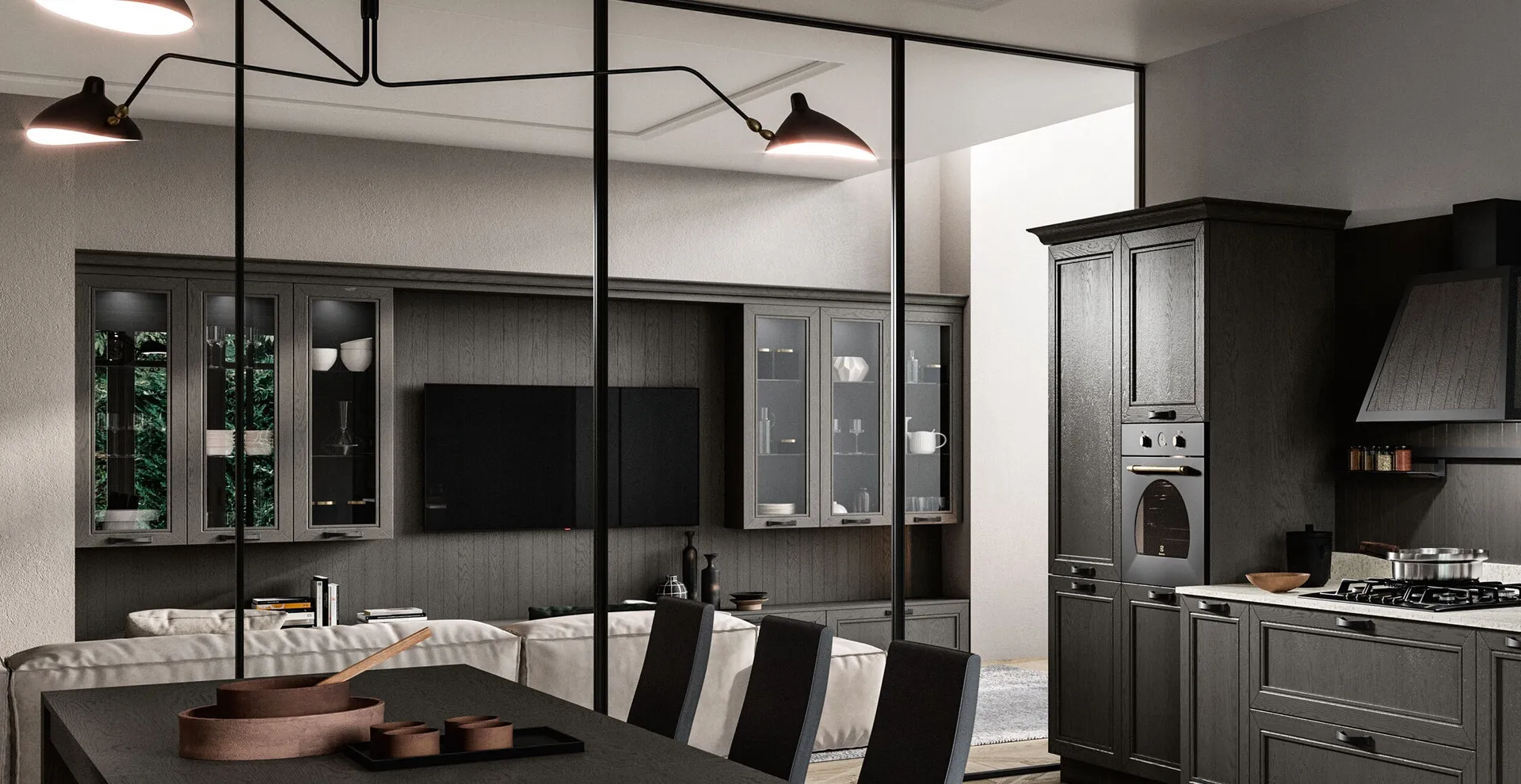 Cliquez pour obtenir des informations sur le mur équipé Living Opera de la marque Arredo3: c'est la solution aux lignes classiques parfaite pour vous.