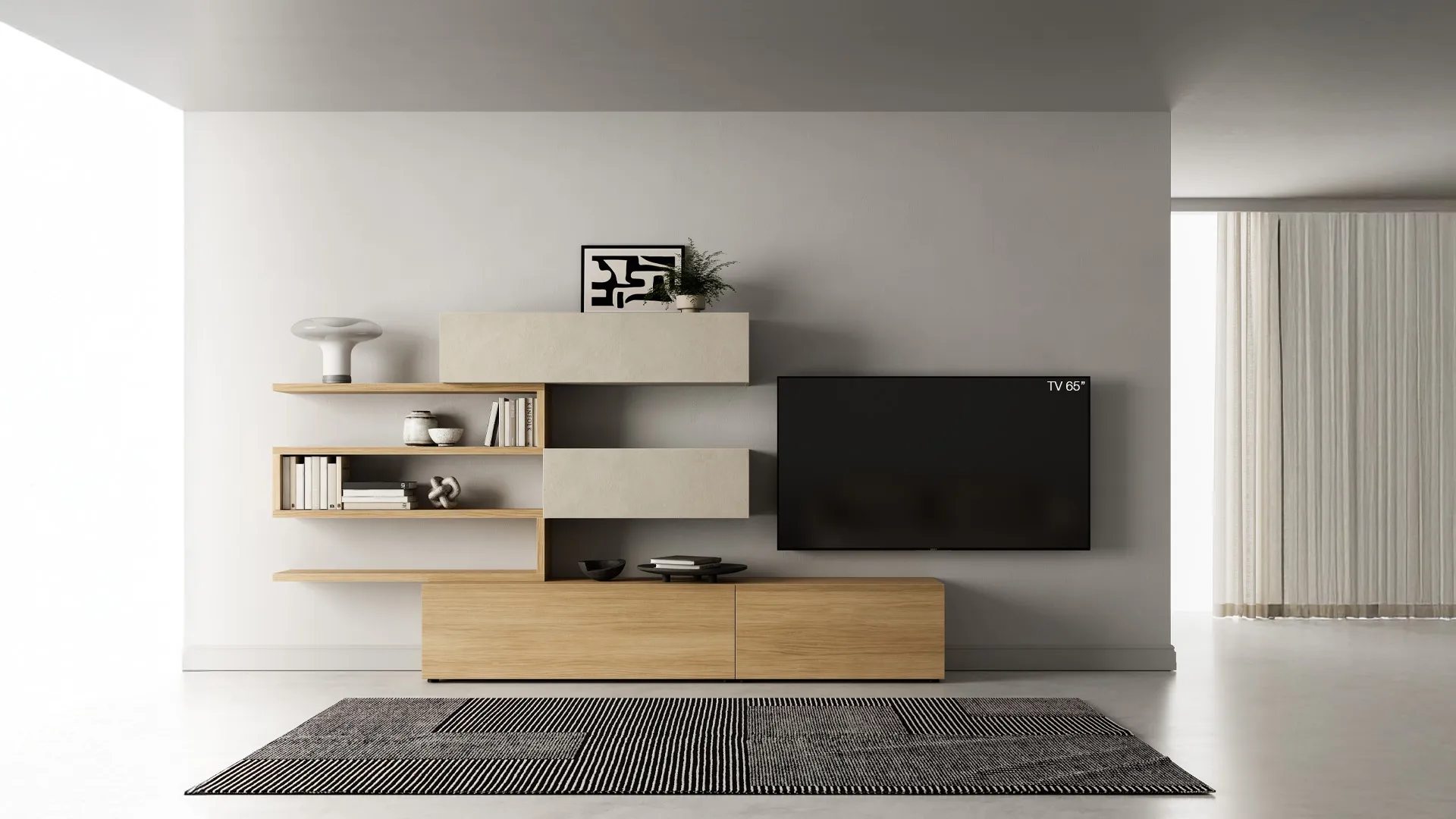 Les meubles de séjour en mélaminé aux lignes modernes, comme le modèle sur la photo, sont vraiment polyvalents et capables de meubler la zone jour en valorisant chaque coin. SantaLucia propose des modèles de meubles de séjour innovants, différents en termes de style et de configurations, textures et accessoires : découvrez en magasin le mobilier des meilleures marques. Le Mur Equipé Pratique PTG406 de SantaLucia sur la photo est l'une des plus belles solutions d'aménagement sur le marché : la modularité sur mesure et les différentes opportunités de conception en font un meuble beau et de grande qualité. Laissez-vous séduire par une large gamme de meubles pour la zone jour et vous trouverez le mur équipé qui vous convient.