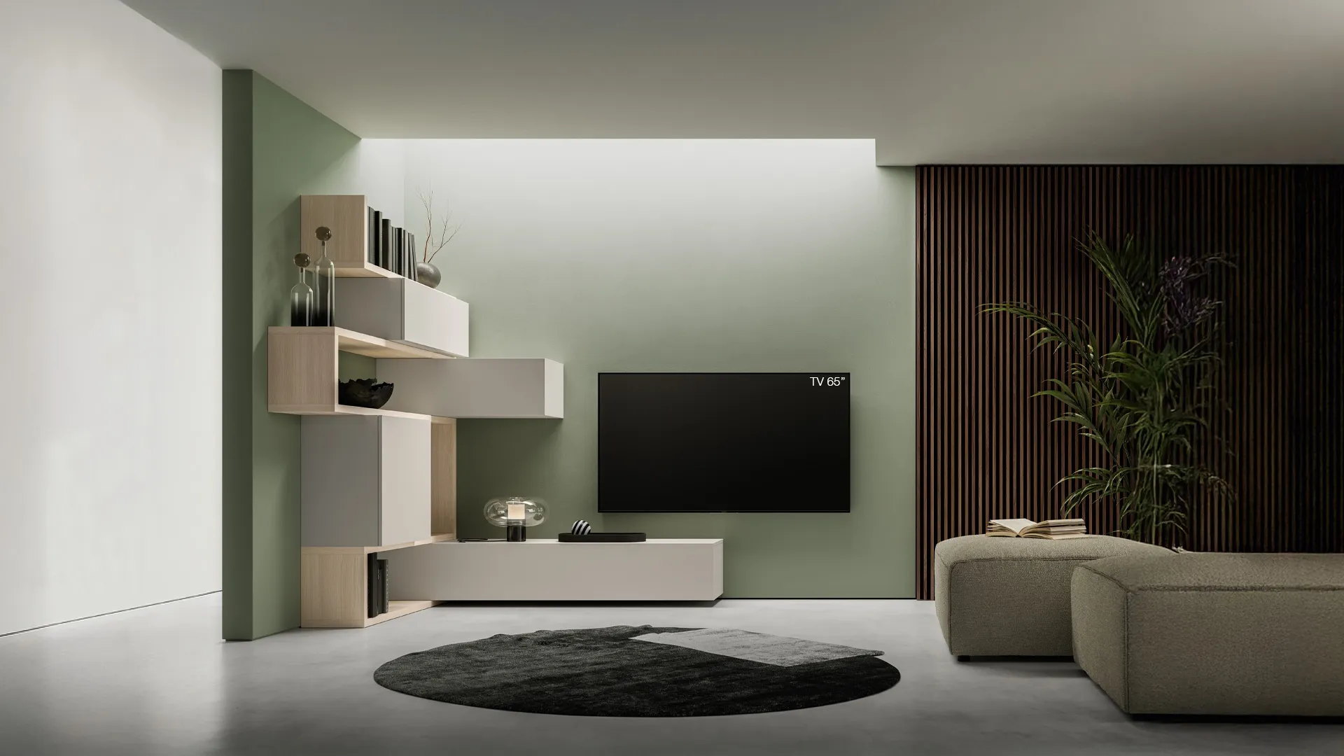Veux-tu meubler un séjour dynamique et fonctionnel? Nous te présentons le mural équipé Pratico PTG409 SantaLucia aux formes modernes et marquées.