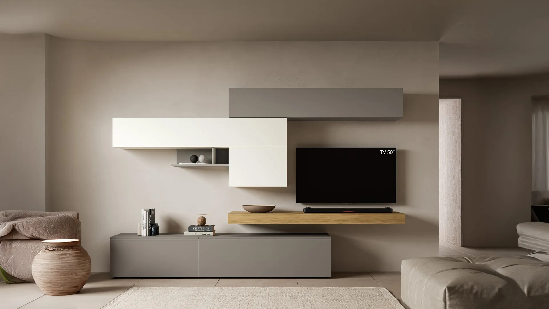 Cliquez et découvrez le mur équipé Pratico PTG413 de l'entreprise SantaLucia : c'est la solution aux lignes modernes parfaites pour vous.