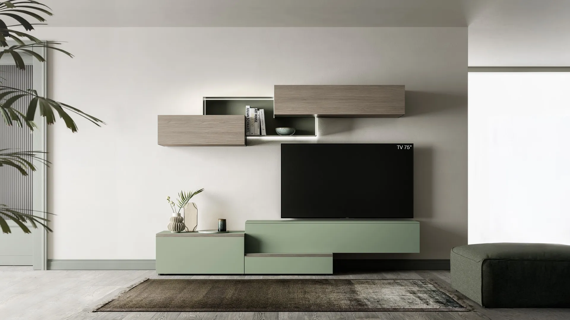 Si vous souhaitez des meubles de salon et des murs équipés modernes, optez pour le modèle Pratico PTG432 de SantaLucia : cliquez et découvrez-en dav