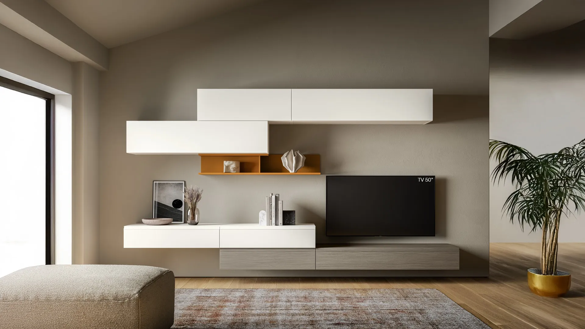 Les murs équipés modernes permettent de recréer différentes ambiances dans le salon, libérant de l'espace et valorisant chaque coin. Découvrez notre gamme de meubles pour la zone jour de la marque SantaLucia et vous pourrez meubler votre maison avec un style unique et la capacité de rangement dont vous avez besoin. Le Mur équipé Pratico PTG439 de SantaLucia devient une présence distinctive dans des pièces de tout genre grâce à ses composants modulaires et à la possibilité de sélectionner textures, matériaux, tons, formes et bien plus encore.