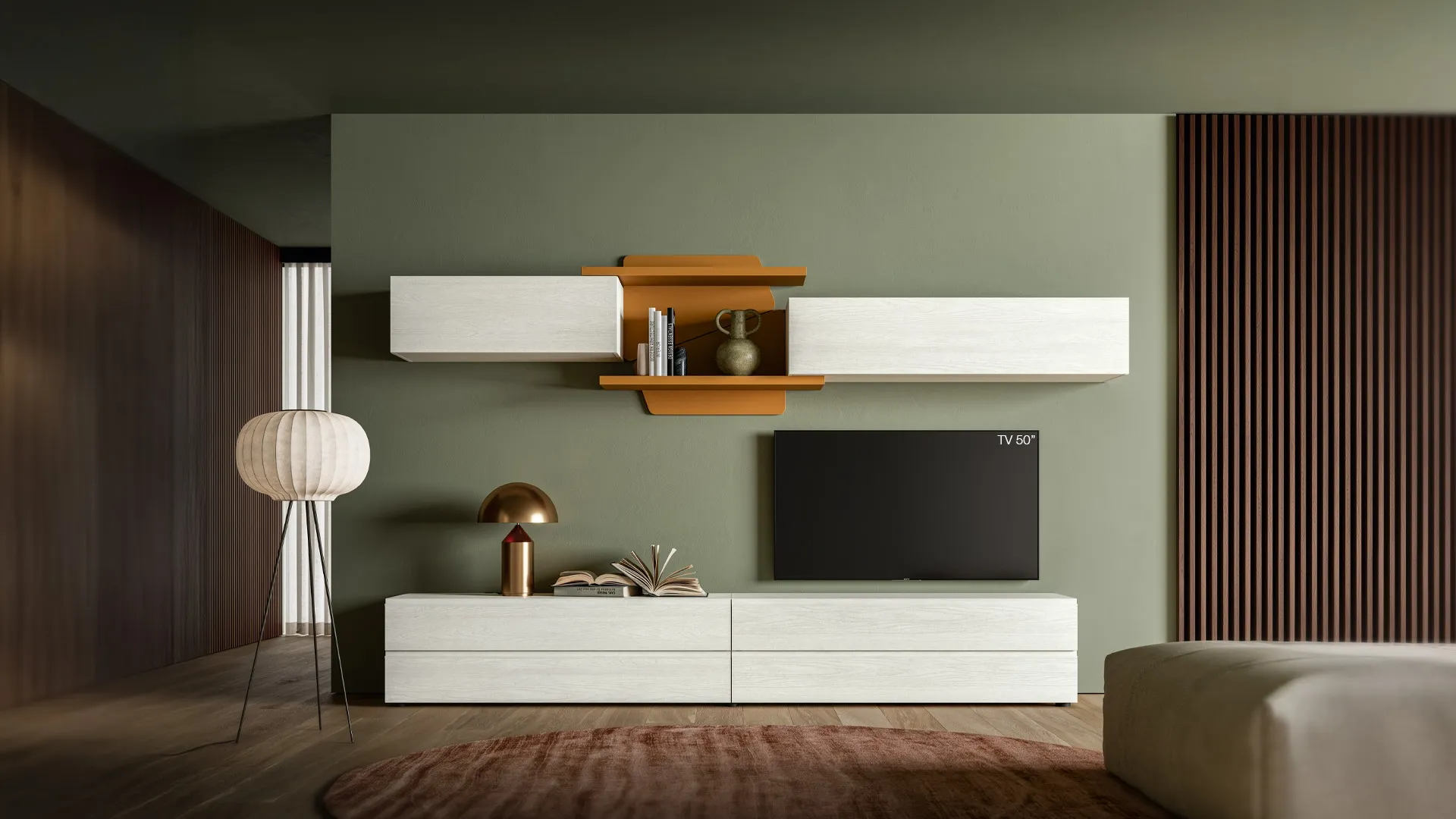 Étant donné que le salon doit être un espace spacieux et esthétiquement précieux, certains meubles beaux et pratiques comme les Unités Murales sont indispensables. L'Unité Murale Pratique PTG443 de SantaLucia sur la photo est l'une des solutions d'ameublement les plus originales sur le marché : sa haute modularité et ses diverses possibilités de conception la rendent pratique et sophistiquée. Les meubles de salon en mélaminé aux lignes modernes comme le modèle sur la photo sont vraiment polyvalents et capables d'ameubler le salon en optimisant chaque coin. Laissez-vous séduire par un riche catalogue de meubles pour le salon et vous trouverez l'unité murale qui vous convient.