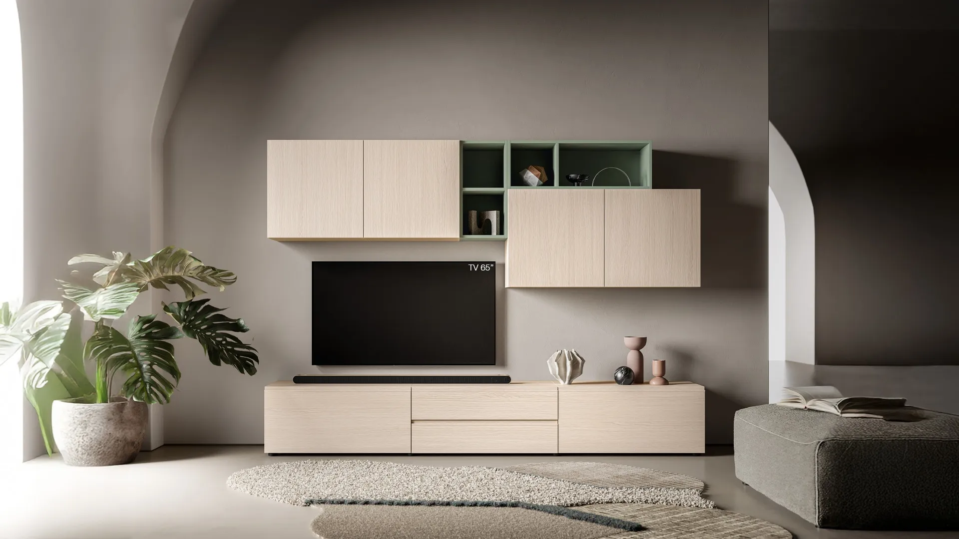 Vous voulez meubler un séjour pratique et dynamique ? Nous vous présentons le meuble mural Pratico PTG445 de SantaLucia, aux lignes modernes et affirmées.