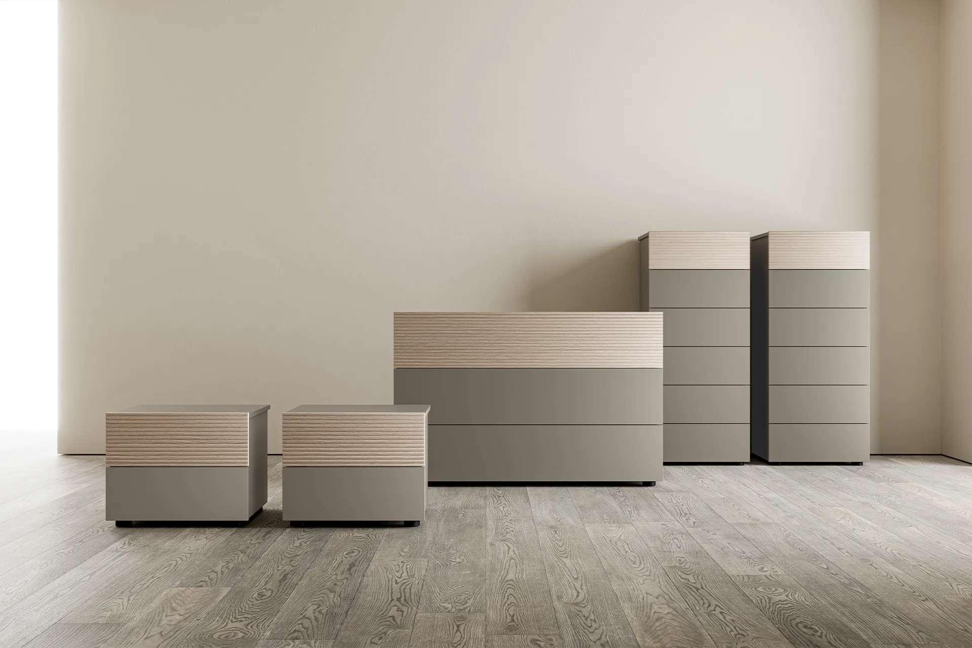 Un catalogue riche de commodes SantaLucia : les tables de nuit modernes en mélaminé, comme Tabula Gruppo Notte, figurent parmi les solutions les plus exclusives.